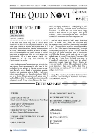 Les opinions exprimées sont propres aux auteurs et ne réflètent pas nécessairement celles de l’équipe du Quid Novi. The content of this publication does not necessarily reflect the views of the McGill Law Students’ Association or of McGill University.