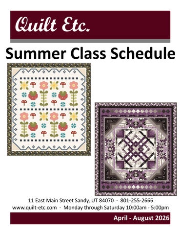Quilt Etc. Summer 2025 Class Schedule - Updated