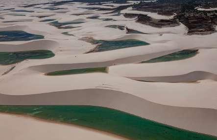 Les Lençóis Maranhenses sont un parc national situé dans l'État du Maranhão, au nord-est du Brésil. Ce site spectaculaire est renommé pour ses dunes de sable blanc et ses lagunes d'eau douce cristallines qui apparaissent pendant la saison des pluies