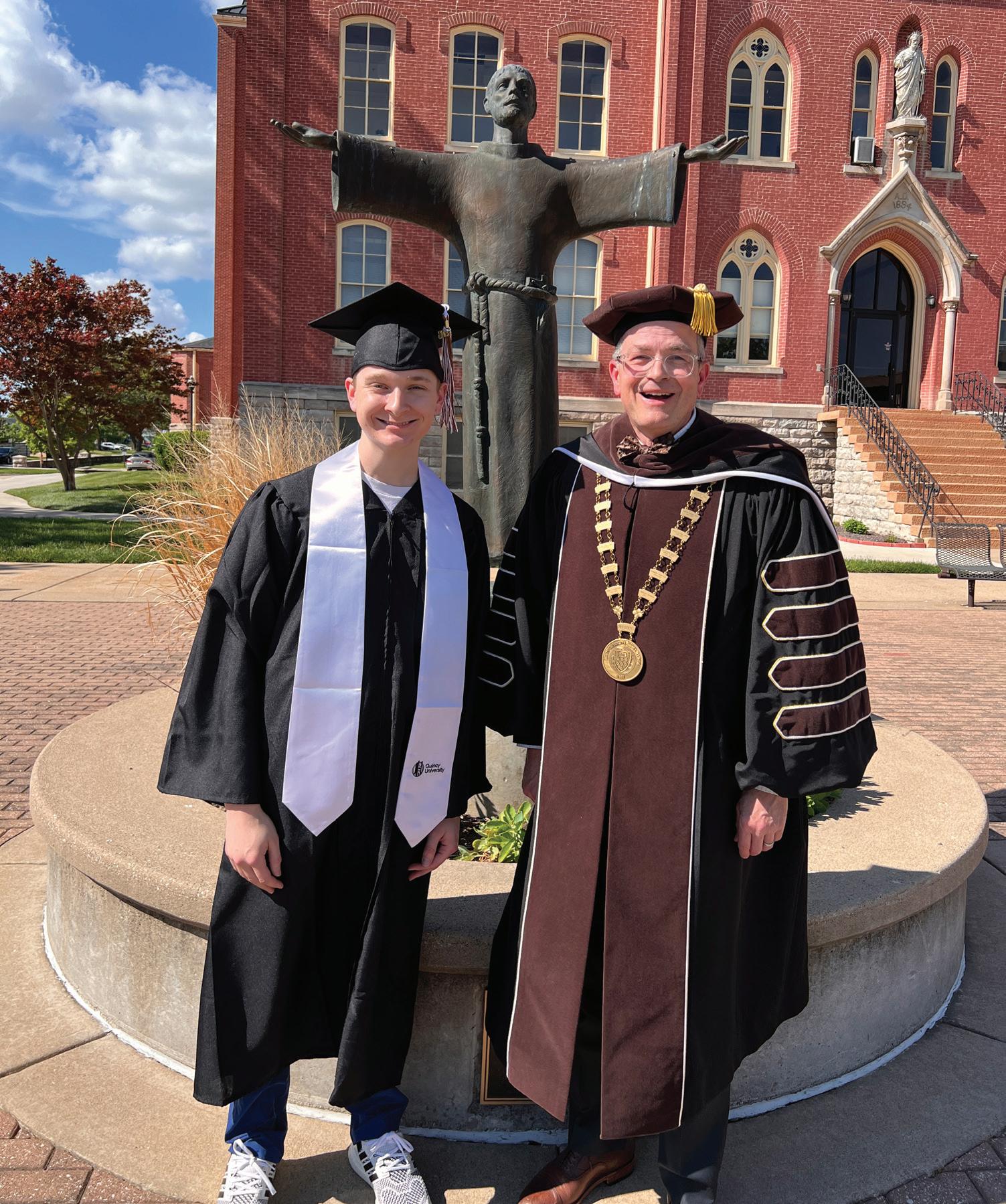 President McGee with Spring 2025 graduate Alaric Mefford. We think St. Francis approves.