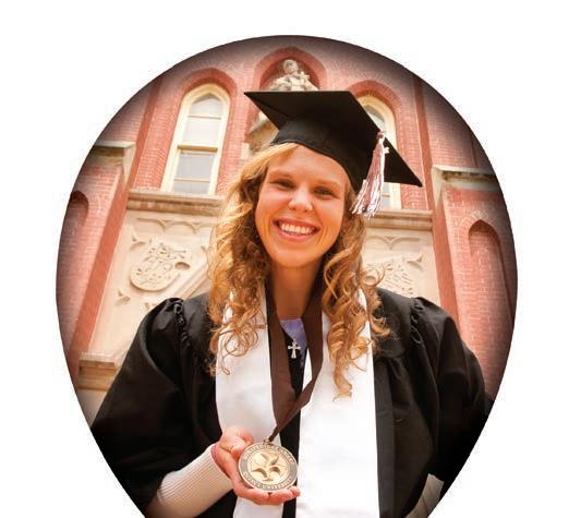 Donning the traditional black gown, mortarboard, and multicolored honor cords, the Lincoln Laureate recipient encouraged her classmates to uphold the words and spirit of St. Francis.