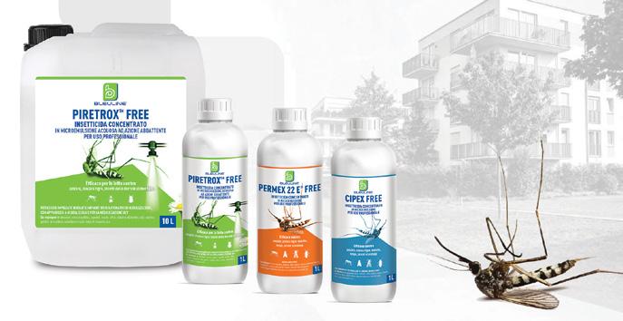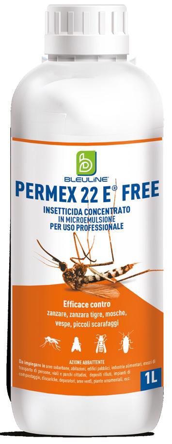 (7,5%); cipermetrina pura (4%), pralletrina pura (0,4%), PBO (2,1%). Il potere abbat tente di entrambi i prodotti è pertanto affidato alla pralletri na, in luogo della tetrametrina presente nel Permex 22 E®, con conseguente assenza del pittogramma GHS08 e della frase H351. Questi due prodotti hanno campi di im piego molto variegati: dalle aree urbane con zone verdi agli ospedali, dai mezzi di trasporto alle industrie ali mentari, dai campeggi ai ta bacchifici, ecc. Entrambi i prodotti sono registrati per l’uso efficace contro zanzare, zanzare ti gre, mosche, vespe e piccoli scarafaggi, attraverso l’uso di pompe manuali o elet triche a bassa pressione e atomizzatori a motore. Gli strumenti chimici, in ottica di uso sostenibile e sicu ro, con il solido supporto di un’attività tecnica di svilup po e ricerca possono costi tuire un valido supporto per la gestione di sfide sempre più impattanti in termini di tutela della salute pubblica, sicurezza alimentare e pro tezione dell’ambiente.