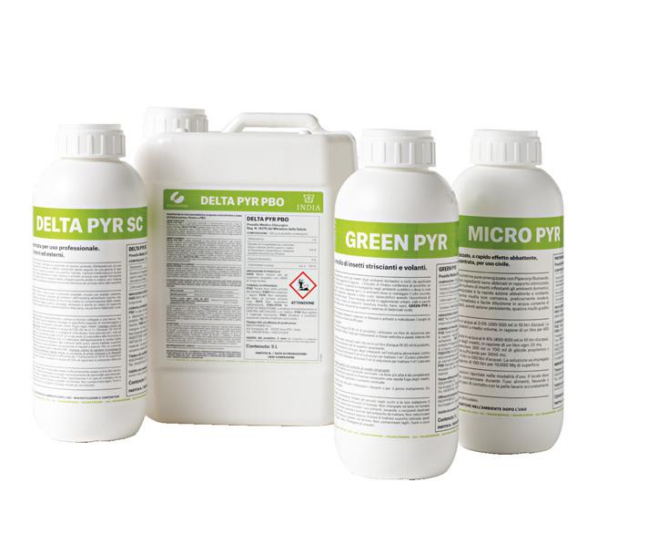 Pyr è la nuova gamma di prodotti contenente estratto di Piretro, con effetto abbattente insuperabile per efficacia e rapidità. Le molecole che compongono il Piretro svolgono un’azione insetticida a ridotta tossicità degradandosi alla luce solare. Il profilo Green la rende applicabile in molteplici ambiti.