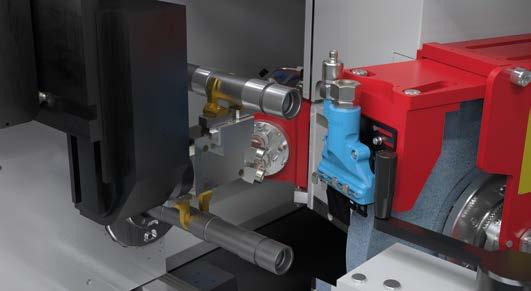 sul contromandrino con il mandrino portafresa motorizzato e le torrette portautensili senza rischio di collisione. La capacità di abbassamento delle torrette portautensili consente inoltre di evitare situazioni con rischio di collisione.