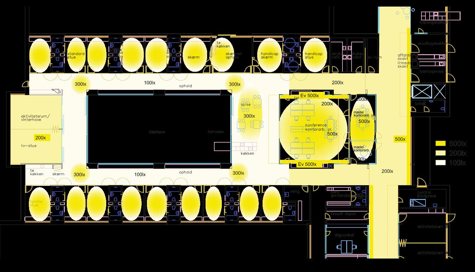 Utilizzando la luce naturale come guida e integrandola con l’illuminazione artificiale, sono state ottenute condizioni di illuminazione a supporto del ritmo biologico quotidiano dei pazienti, delle condizioni di lavoro del personale e della sicurezza