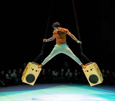 Described as a “circus sound theatre for all the senses,” Murmur is an innovative performance by the acclaimed Belgian circus company Grensgeval. Performer Camiel Corneille captivates audiences by pulling tiny speakers from his suit, creating immersive soundscapes of buzzing bees, purring cats, and crashing waves. As the choreography intensifies with bold movements, Corneille leaps and swings through the space, inviting the audience into his mesmerising world.