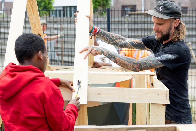 'Jouw eigen bouwsteen' werken TL-leerlingen van het Ichthus College en jongeren uit de Internationale Schakelklas van het Almere College samen aan een uniek kunstproject. ‘ IK WIST NIET DAT ER PAUZES VAN MAAR ÉÉN SECONDE BESTONDEN... WAT EEN FLOW!’ Bouwdocent Ronald Jonkman