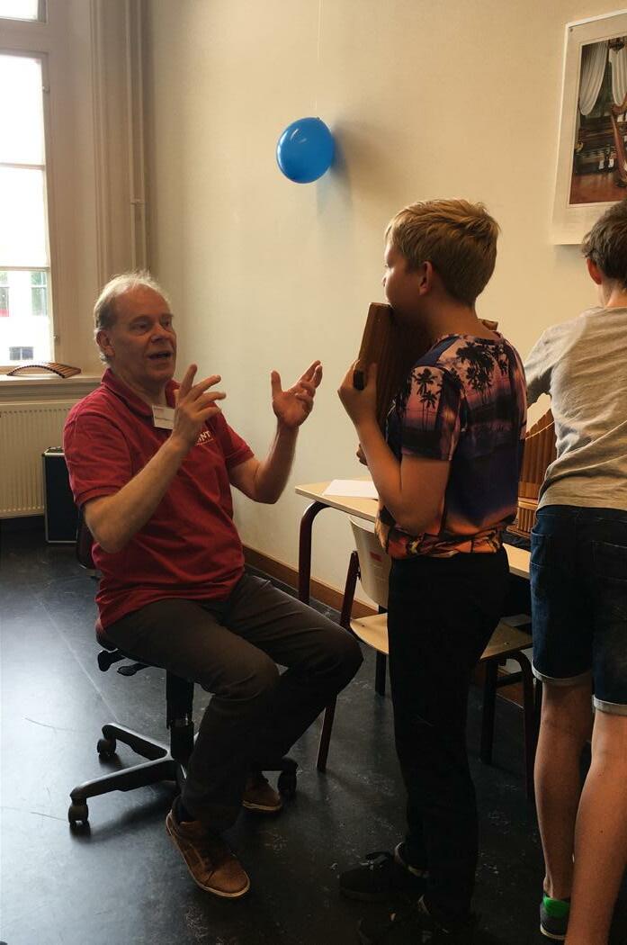 “Tijdens het jubileumfeest op de Eben-Haëzer ging ik een eeuw terug in de tijd: meisjes in kanten jurkjes en schortjes met bijpassende kapjes en haardracht, jongens in boerenkiel met bretels en stoere petten, het geluid van klepperende klompjes. Ik mocht iets vertellen over de boekbinderij: in zeven minuten per groepje van acht leerlingen. Aan de hand van een oude schoolplaat van een binderij uit 1920, hielpen de kinderen de voorwerpen die ik had meegenomen, terug te vinden tussen de gereedschappen op de plaat. Ik heb genoten van een leuke en gezellige dag. Als oud-docent heb ik wel een record gebroken: in 126 minuten 144 kinderen lesgeven!”