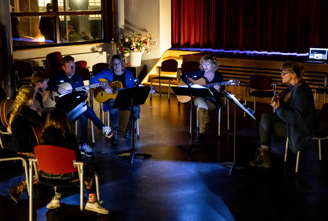 Normaal gesproken buiten: maar vanwege de kou en regen heeft de Kamper Kampvuuravond dit keer binnen plaatsgevonden in Quintus. Met een kampvuurvideo op de beamer en een zaal vol gitaristen toch een heel succesvol evenement. Een mooi samenwerkingsverband met de ondernemers uit de binnenstad en tussen alle gitaristen van Quintus en de Muziekbrouwerij.