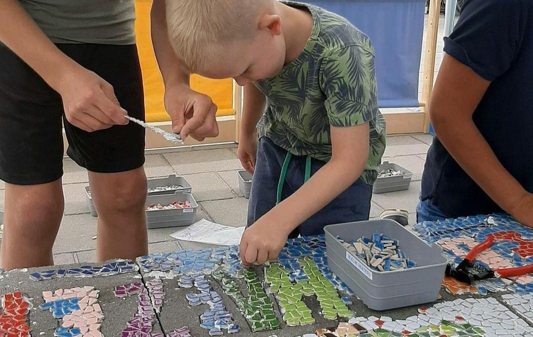Quintus mocht dit schooljaar weer een rol spelen in tal van jubilea van leerkrachten en scholen en het afscheid van directeuren en leerkrachten. Daarin viel er eentje extra op: het 100-jarig bestaan van basisschool Eben-Haëzer in IJsselmuiden. Wat begon met een voorgesprek over een creatieve workshop resulteerde in een volledig samenwerkend vormgeven van de jubileumviering. Het werd een keuzeprogramma voor leerlingen gevuld met workshops van eigen leerkrachten en van Quintus rondom het thema ‘100 jaar’. Van klompendans en robots tot oude ambachten als boekbinden, glas-in-lood en smeden. Met alle kinderen samen werd een blijvend mozaïekkunstwerk gemaakt. Als mooie herinnering aan een bijzonder project, komen alle teamleden binnenkort naar Quintus voor een gezellige en inspirerende kunstworkshop.