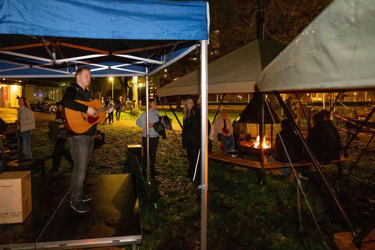 Een kampvuur, muziek en meer activiteiten in het donker tijdens festival Delight
