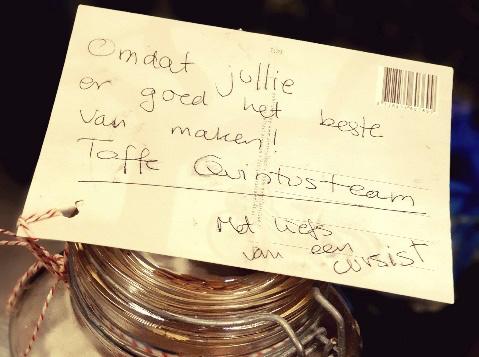 Een warme attentie van een cursist voor het Quintusteam tijdens de lockdown in december 2021