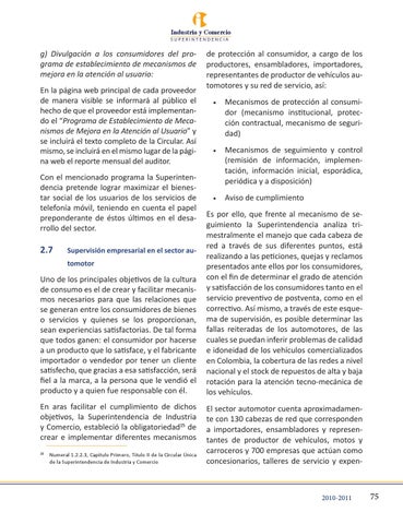 de protección al consumidor, a cargo de los productores, ensambladores, importadores, representantes de productor de vehículos automotores y su red de servicio, así: •