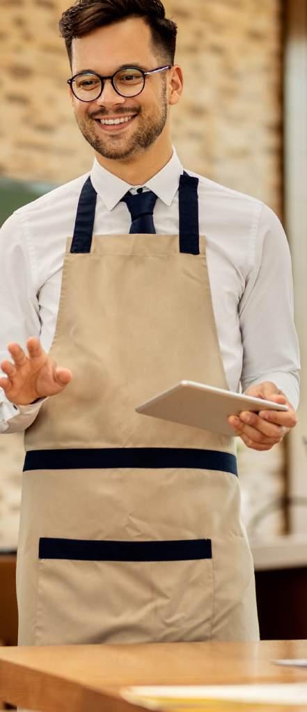 Delantal, gorra, escarapela de Accesorios: identificación y dispositivo para la toma de pedidos.