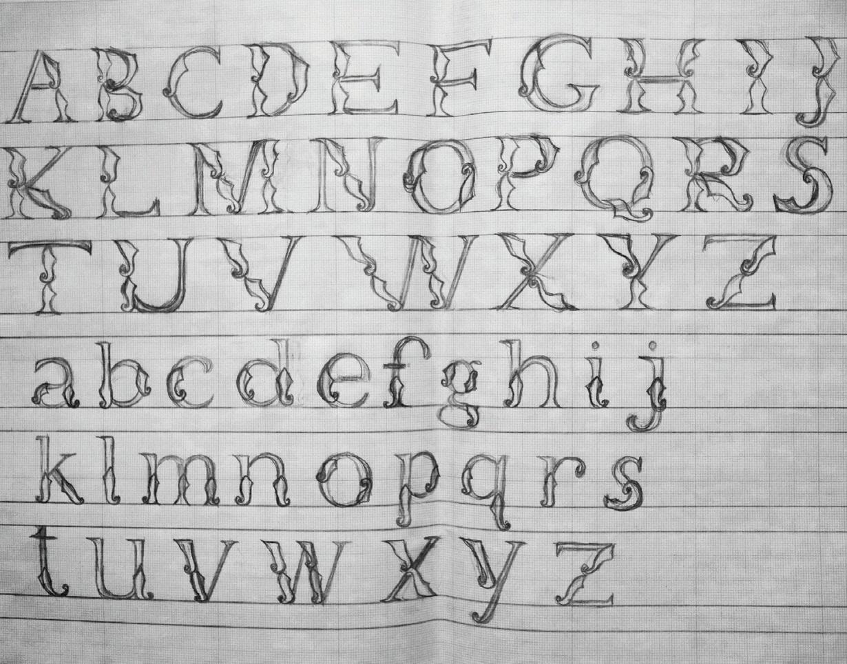 The process of Lembayung Display Font started with manual sketching.