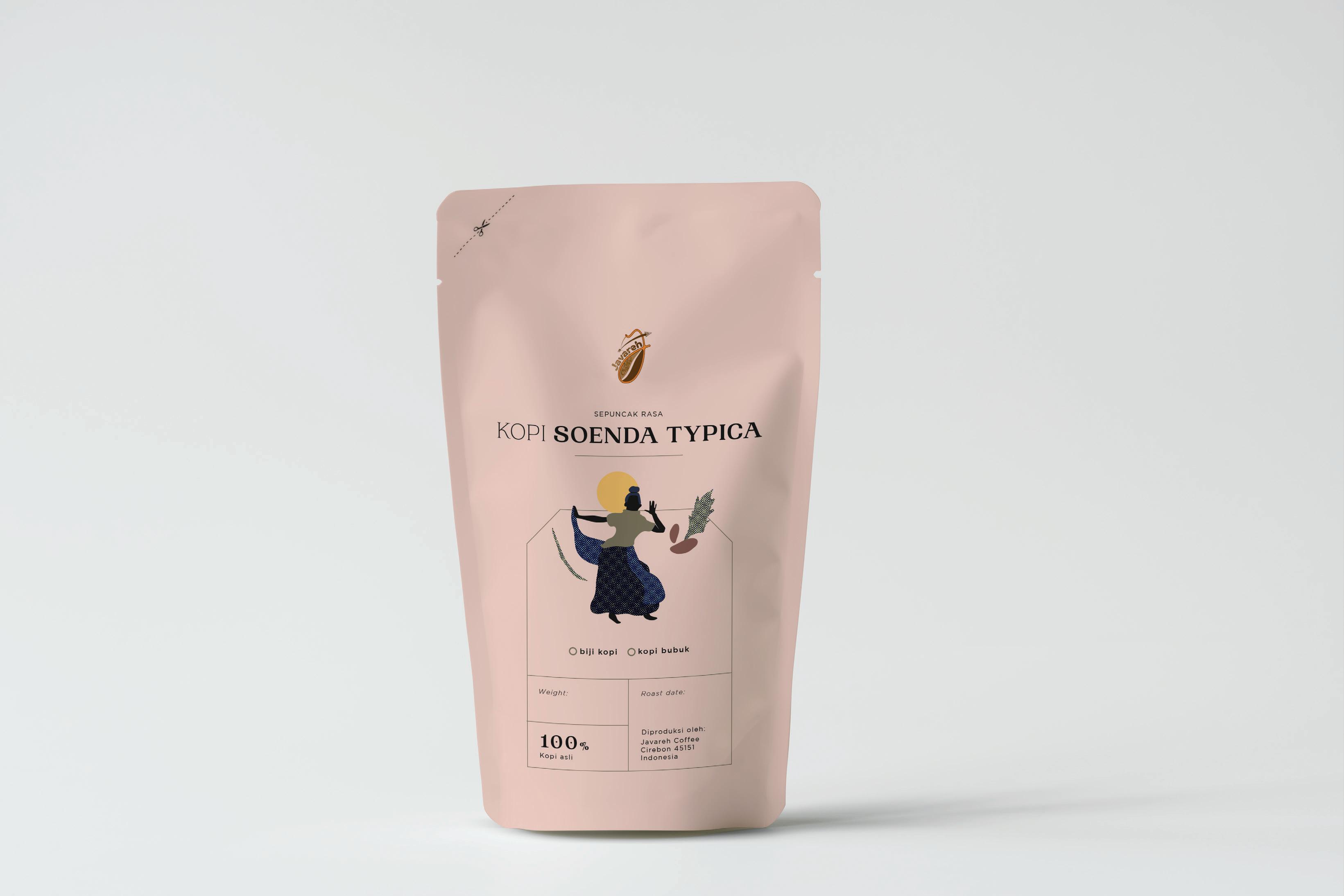 Soenda Typica is one of coffee products that is produced by Javareh. The illustrations represent a Sundanese traditional dance called Jaipong and coffee plant.