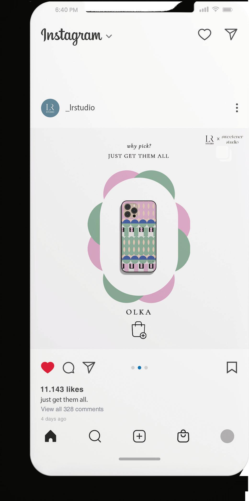 It’s a collaborative project between LR Studio and Sweetener Studio. The products are phone cases with mixed patterns of LR and Sweetener. I was responsible for teaser poser, catalogue and promotions on LR’s social media.