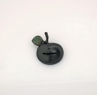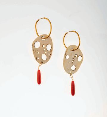 Metallblech, versilbert und vergoldet, roter Kunststoff.