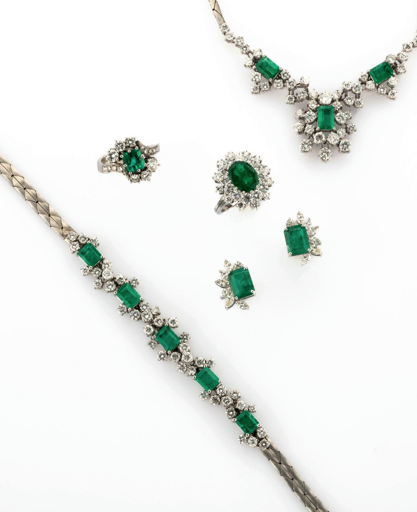 Collier 51,11 Gramm, Anhänger 37 x 32 mm, Halskette L. 380 mm; Ohrclips zus. 16,55 Gramm, 19 x 18 mm.