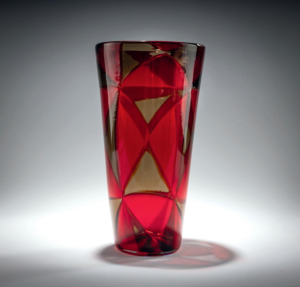 Only a few glass manufacturers have managed to work at the highest artistic level for so many decades as Barovier. What makes Barovier special is that Ercole Barovier was responsible for both the business and artistic management of the company for a long period of time. The maestro, who died in 1974 at the age of 85, created the ‘Dorico’ decoration in 1960, which consists of relatively large murrine made of milky white glass combined with colored murrine in a checkerboard pattern. A tall vase signed by the master and dated 1965 in the rarer ‘Dorico corniola’ variant is valued at € 9,000 - 12,000.