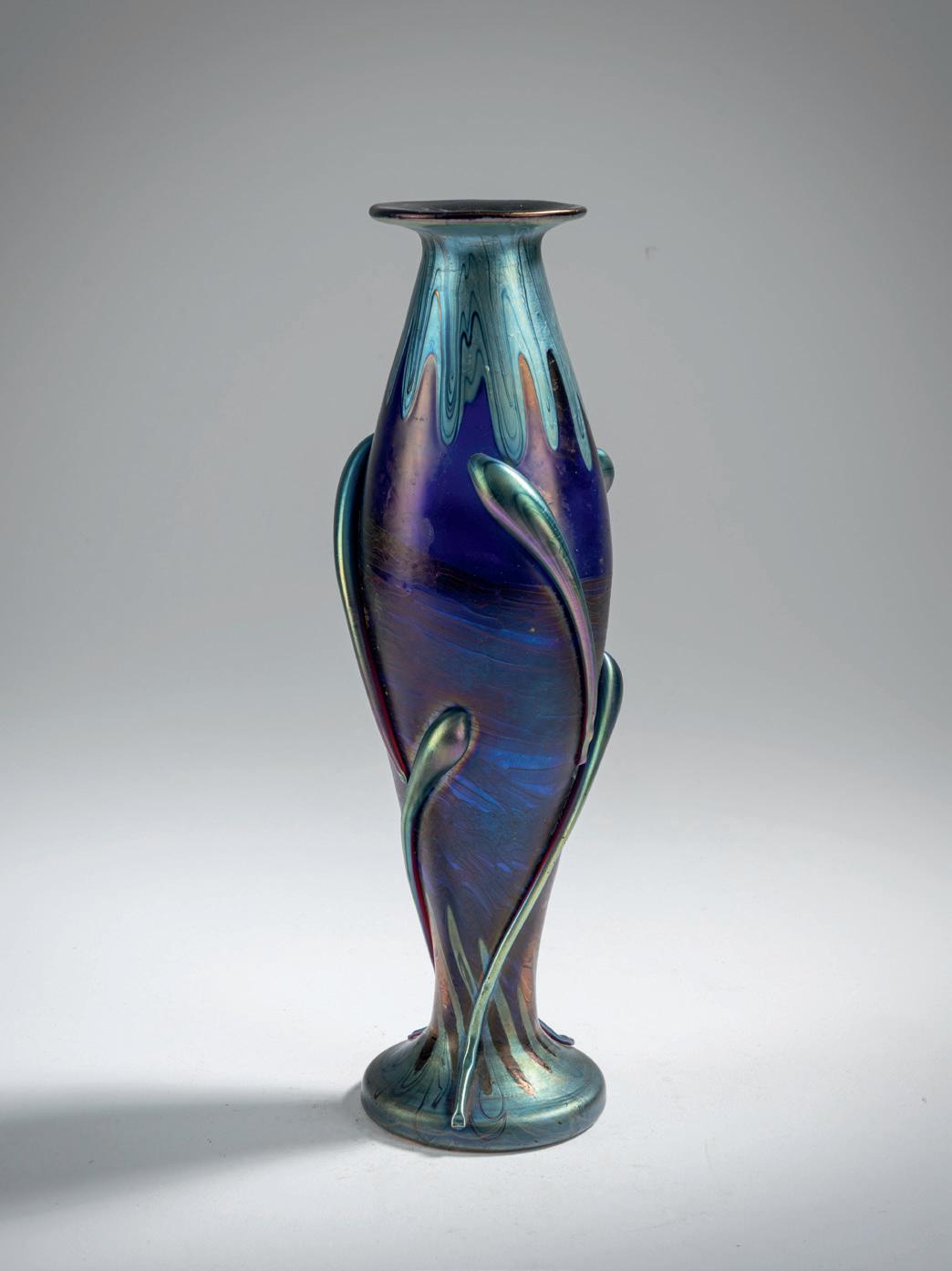 Bröhan-Museum Berlin, Sammlung Bröhan Bd. II, Kunsthandwerk 1, Berlin 1977, Nr. 112; vgl. Ricke/Ploil, Lötz Böhmisches Glas, Bd. 1, Mün chen, 1989, S. 134. Nr. 107, der Dekor gehörte zu den Entwürfen von Franz Hofstötter für die Pariser Weltausstellung. Es handelt sich um eine der aufwendigsten Phänomen Genres überhaupt. € 3.000 - 4.000