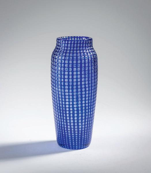 H. 37,5 cm. Glas, farblos und leicht rosa, gekämmter Fadendekor, gold- und perlmuttfarben mattlüstriert. € 1.200 - 1.600