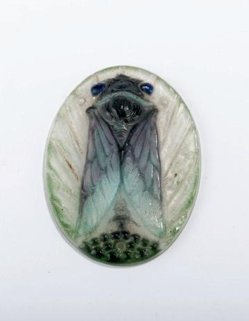 6,4 x 4,8 cm. Pâte de verre, farblos, blau, grün und violett. Sign.: G.A.R. (vertieft). Bloch-Dermant, G. Argy-Rousseau, Paris 1990, Nr. 23.30.