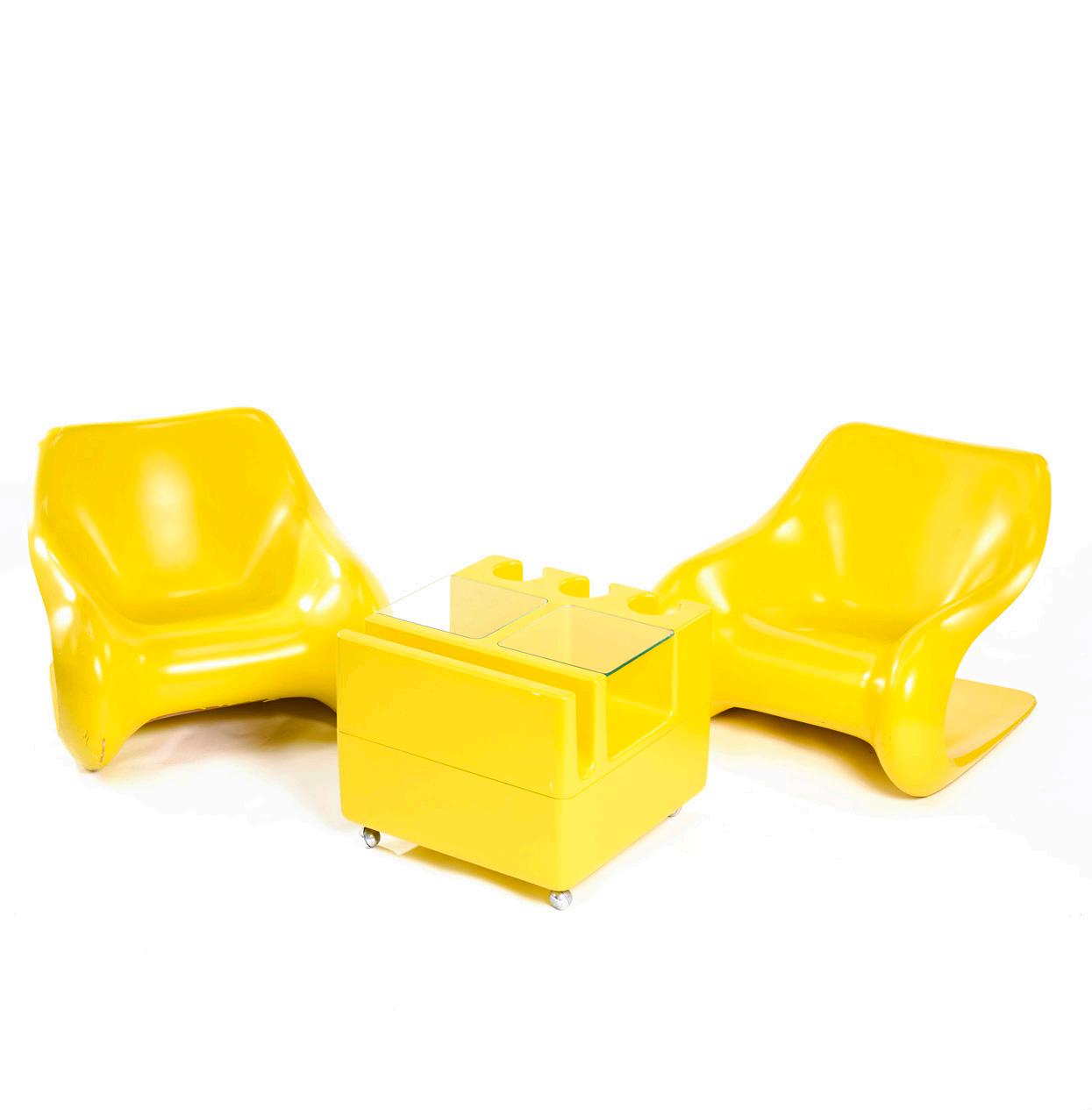 Schlaufentisch, um 1939 und zwei Sessel 'RS7', 1930er Jahre
