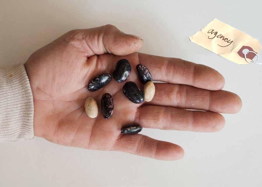 years of fine art college, becoming a mother, grandmother, and seed steward. My art not fine, not that European colonial art, no more. Now it is dutifully tending and caring for a truer value guided by attentive listening to the plant and seed teachings. While drawing the unique aspects of the seeds, they draw me into the seed of an idea. While digging the hard packed earth, a worm appears, my tongue twists, a new language emerges. A collaboration, the best kind, one with a tension of diversity, of sharp edges to challenge the authenticity, the moral authorship, the expansion of the story. To create symbiotic beauty, beautiful trouble, to stir, to render anew from the dark to light. We sprout from our roots a new reciprocal language broadcasting seed syllables on common ground.