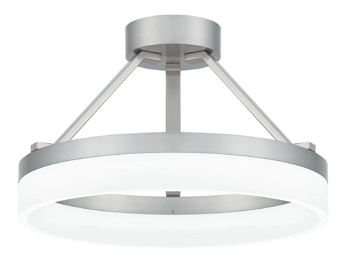 Simple and striking, the Dunbar flush mount offers a contemporary lighting solution in a variety of interior settings. The white acrylic shade is accentuated by clean metal lines, in either brushed nickel or matte black. An integrated LED light source is included for beautiful, energy-efficient illumination.