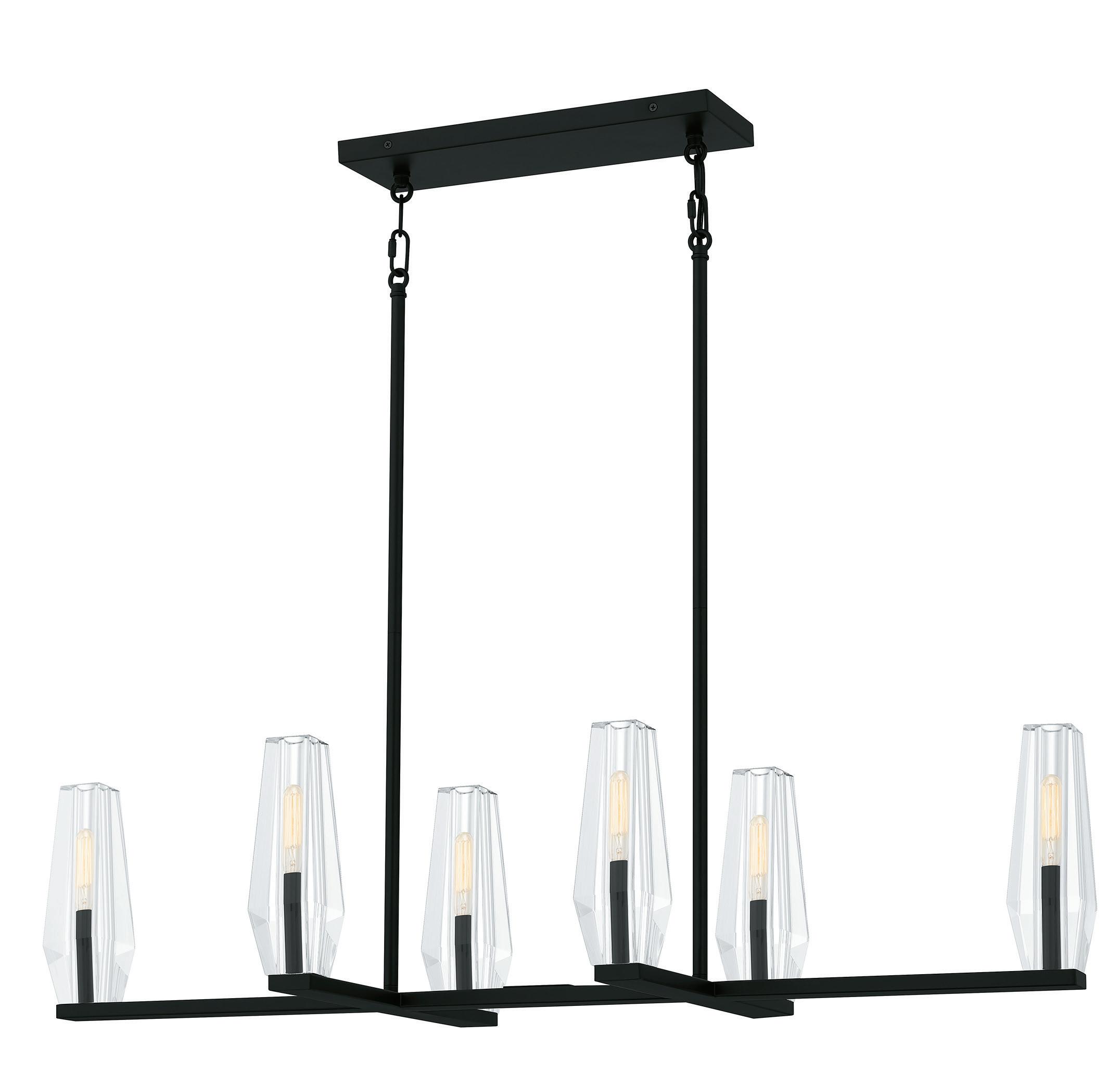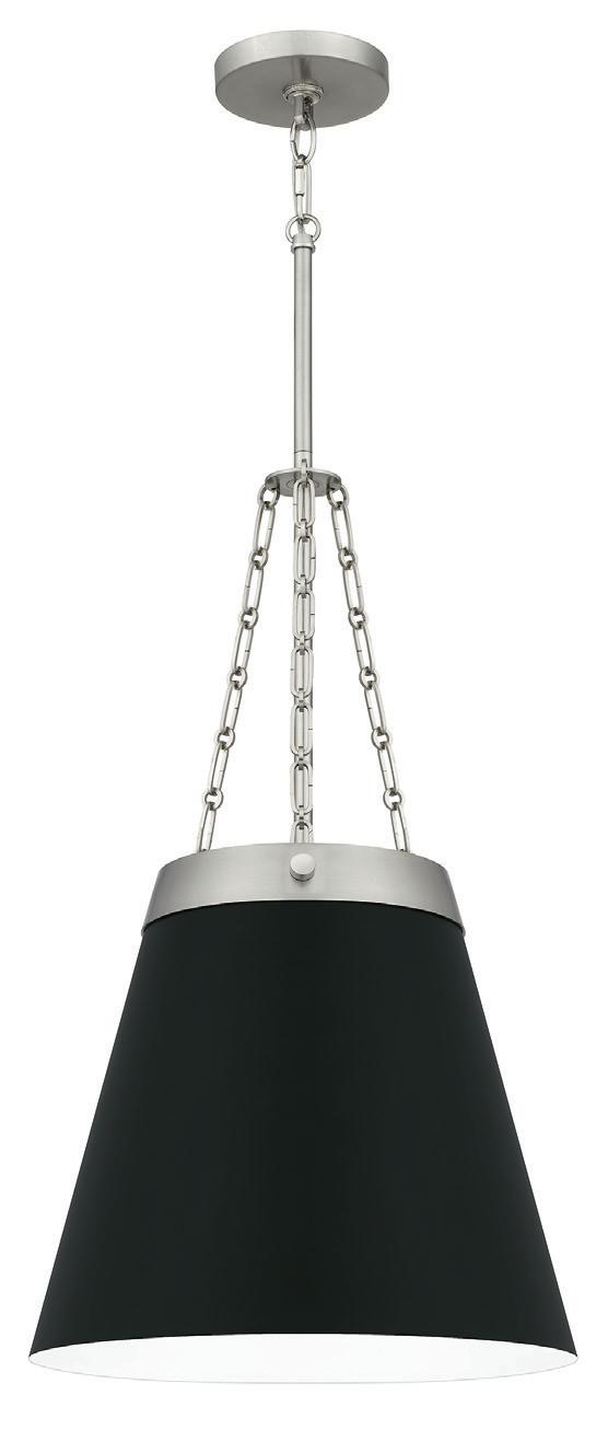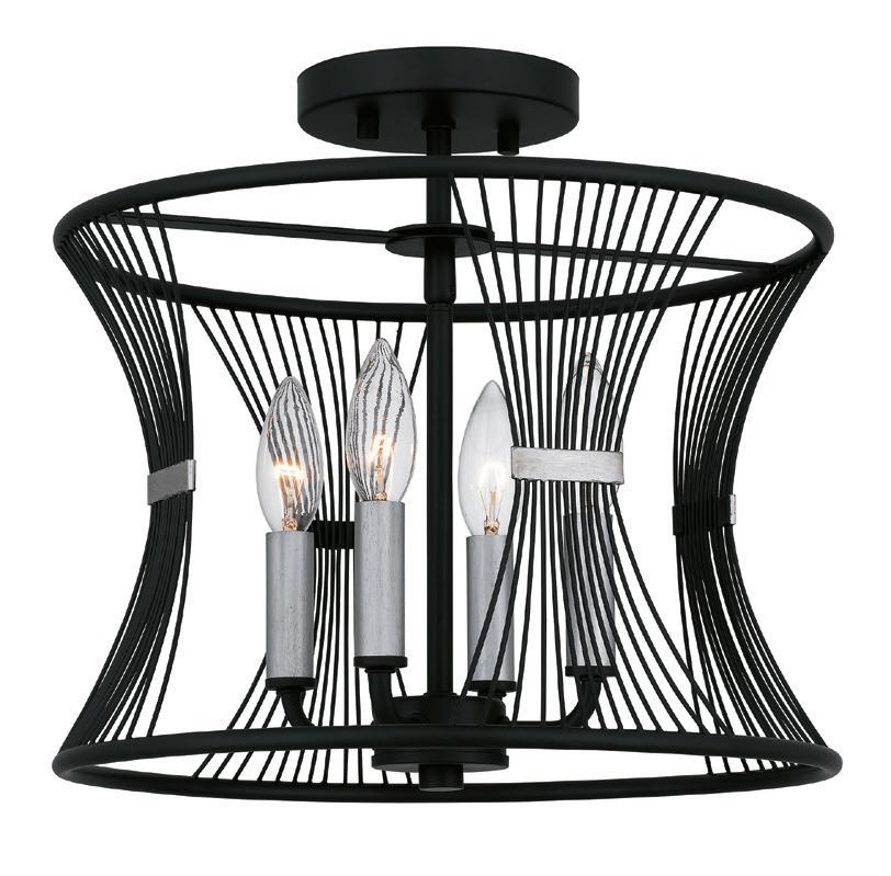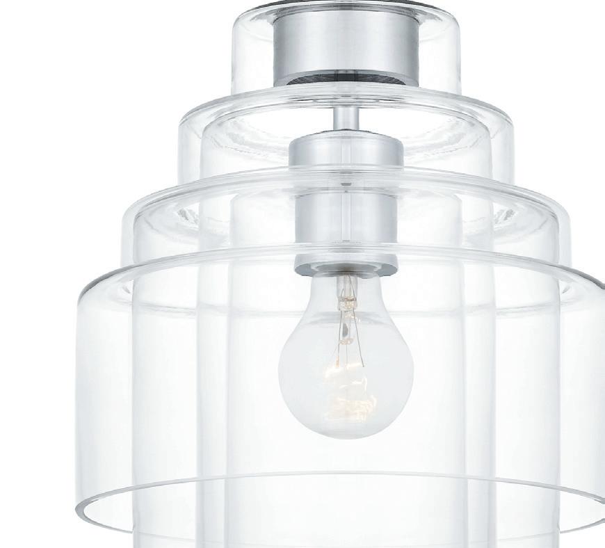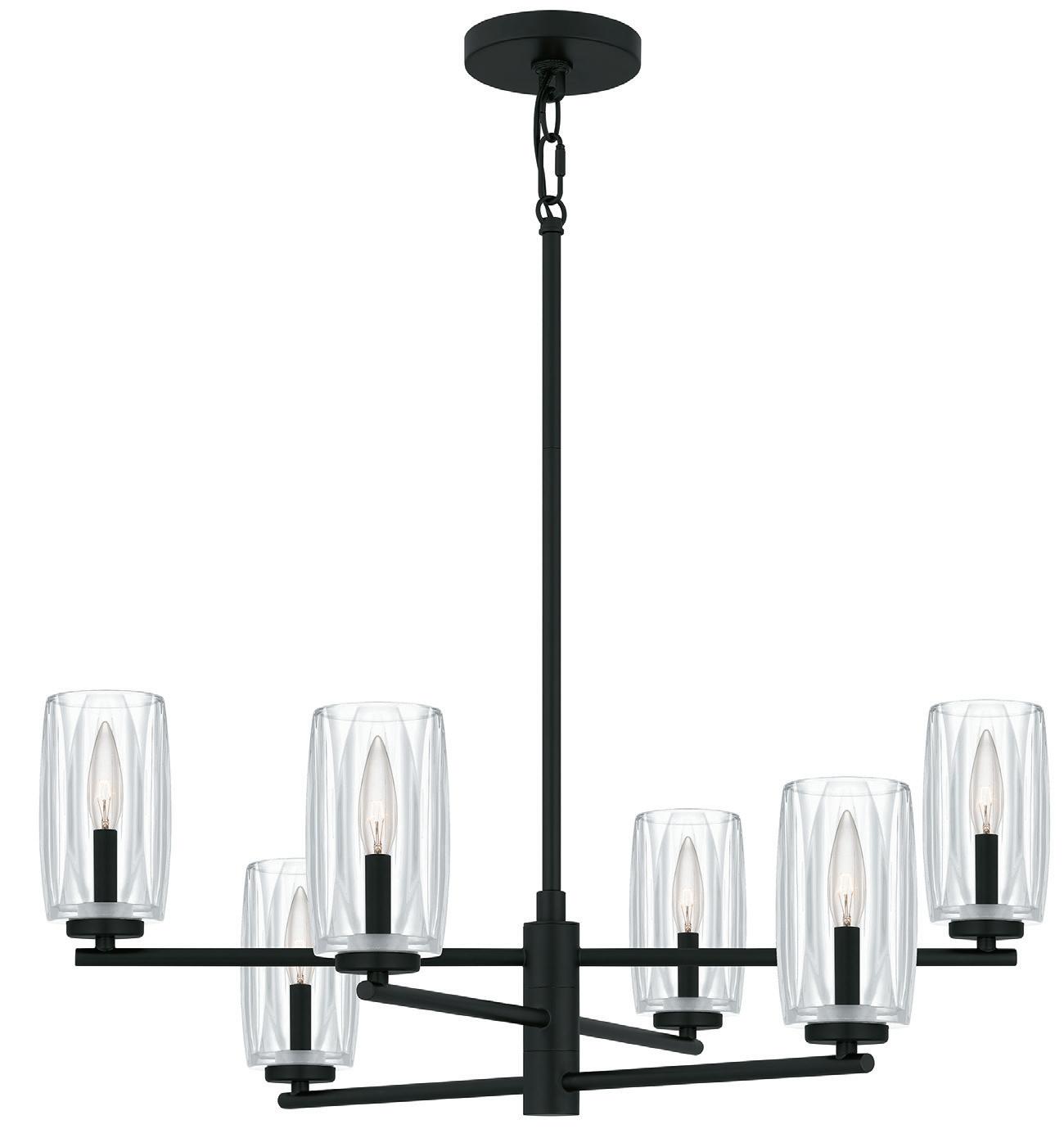Though you can choose from a clear hammered glass shade, beige fabric shade, classic chandelier, or an airy, open-frame pendant, Blanche features a unifying style via its simple lines and traditional matte black finish. The different shapes — from flush mount to chandelier — also work well together throughout a variety of spaces.