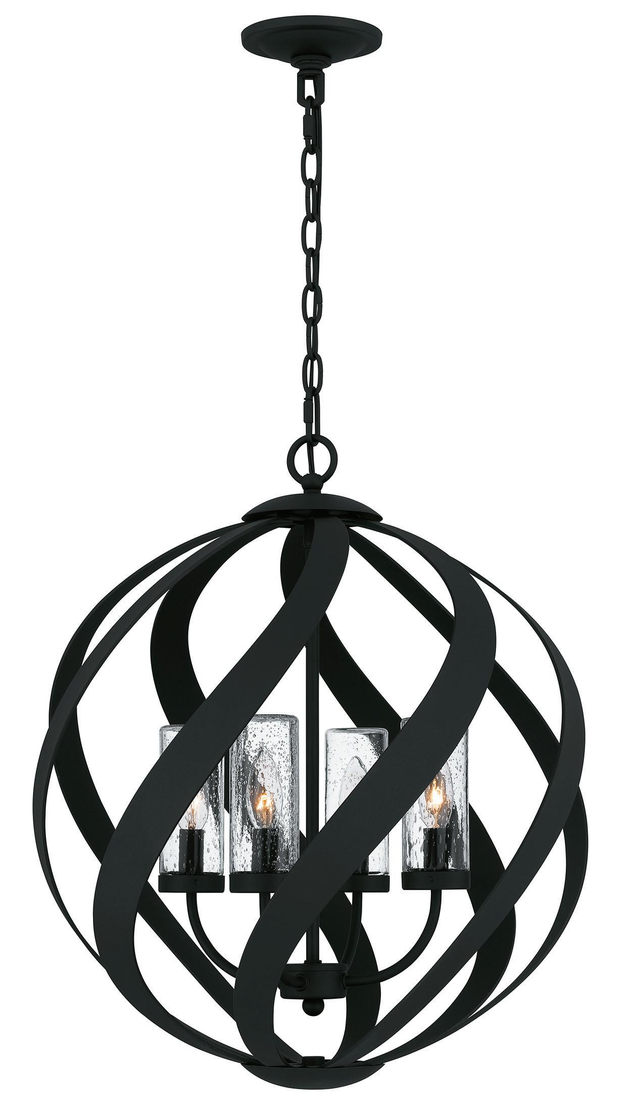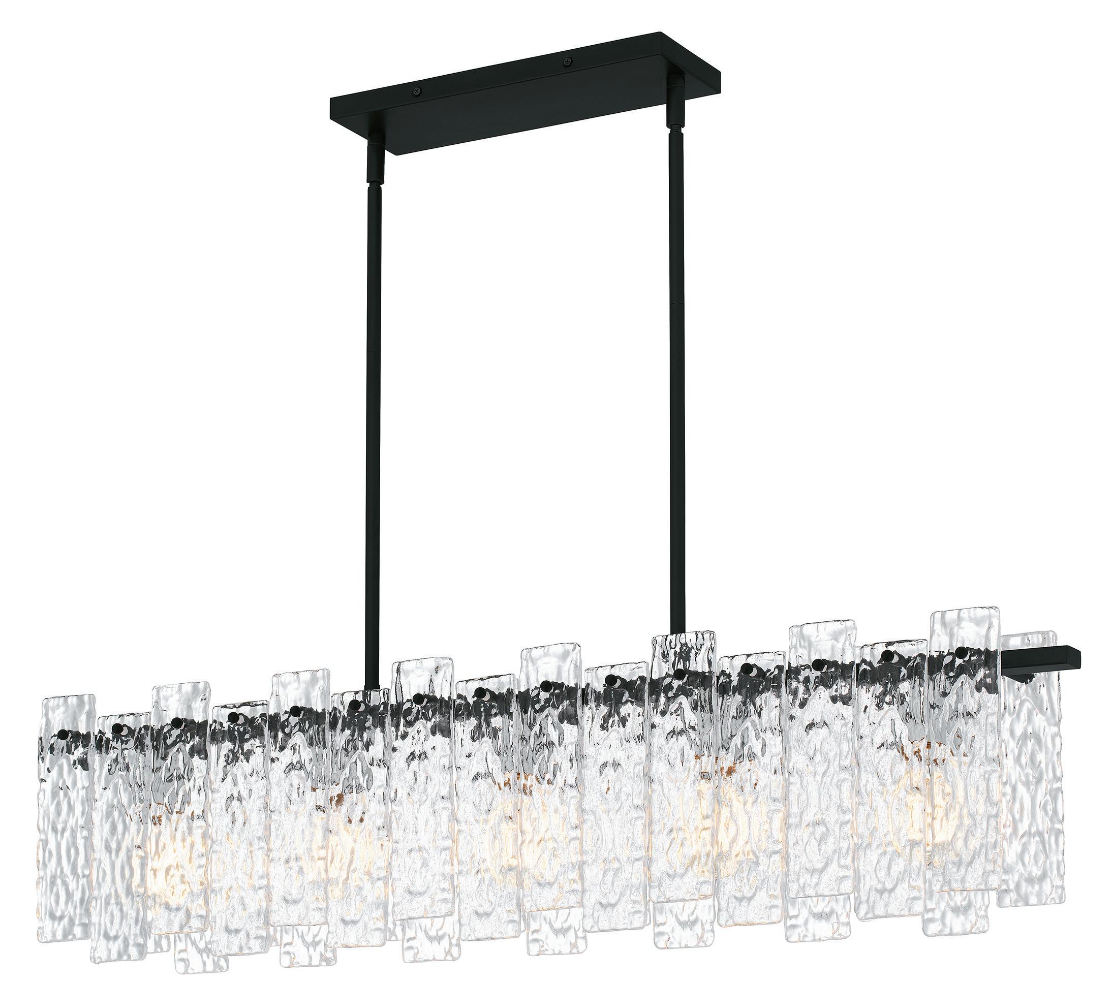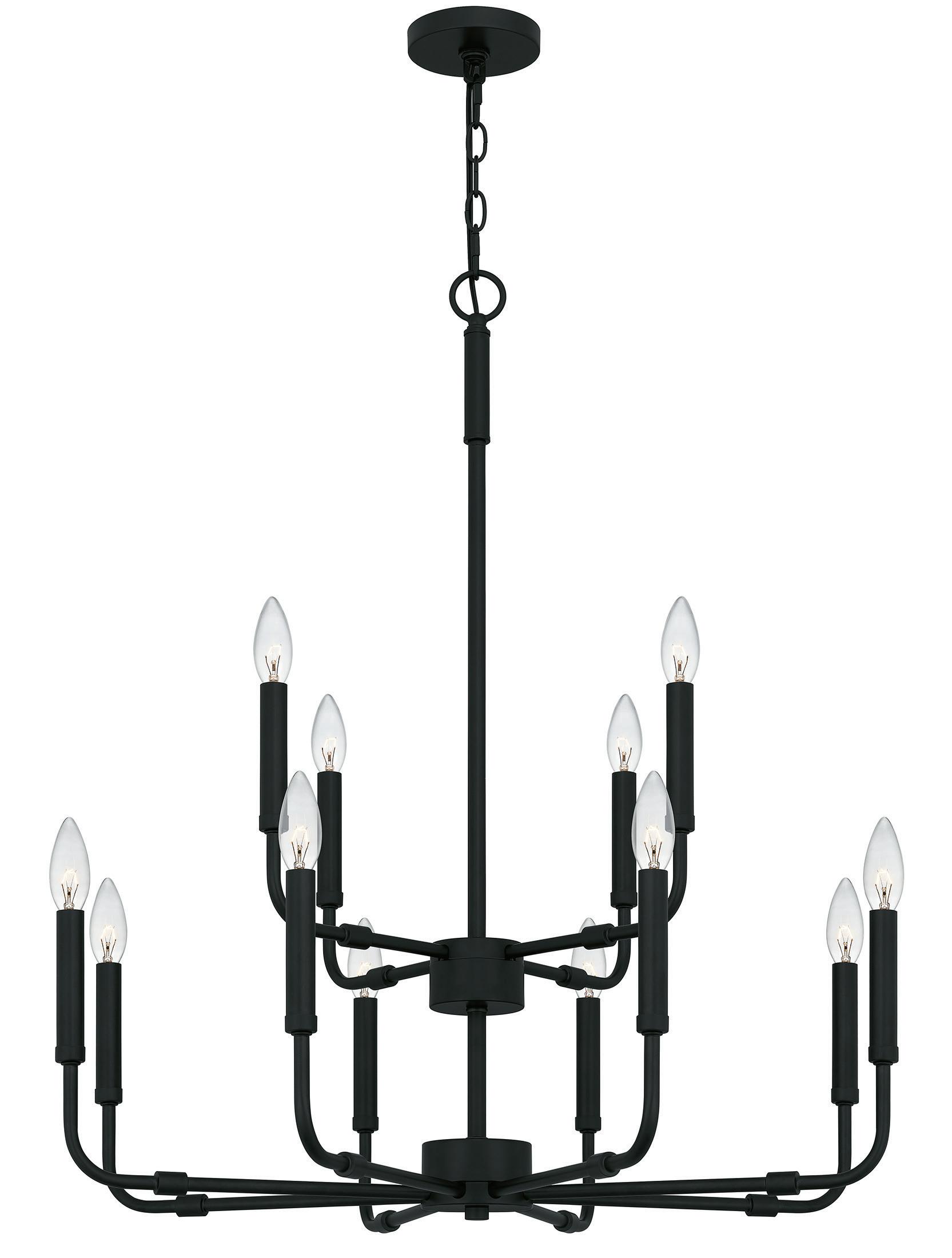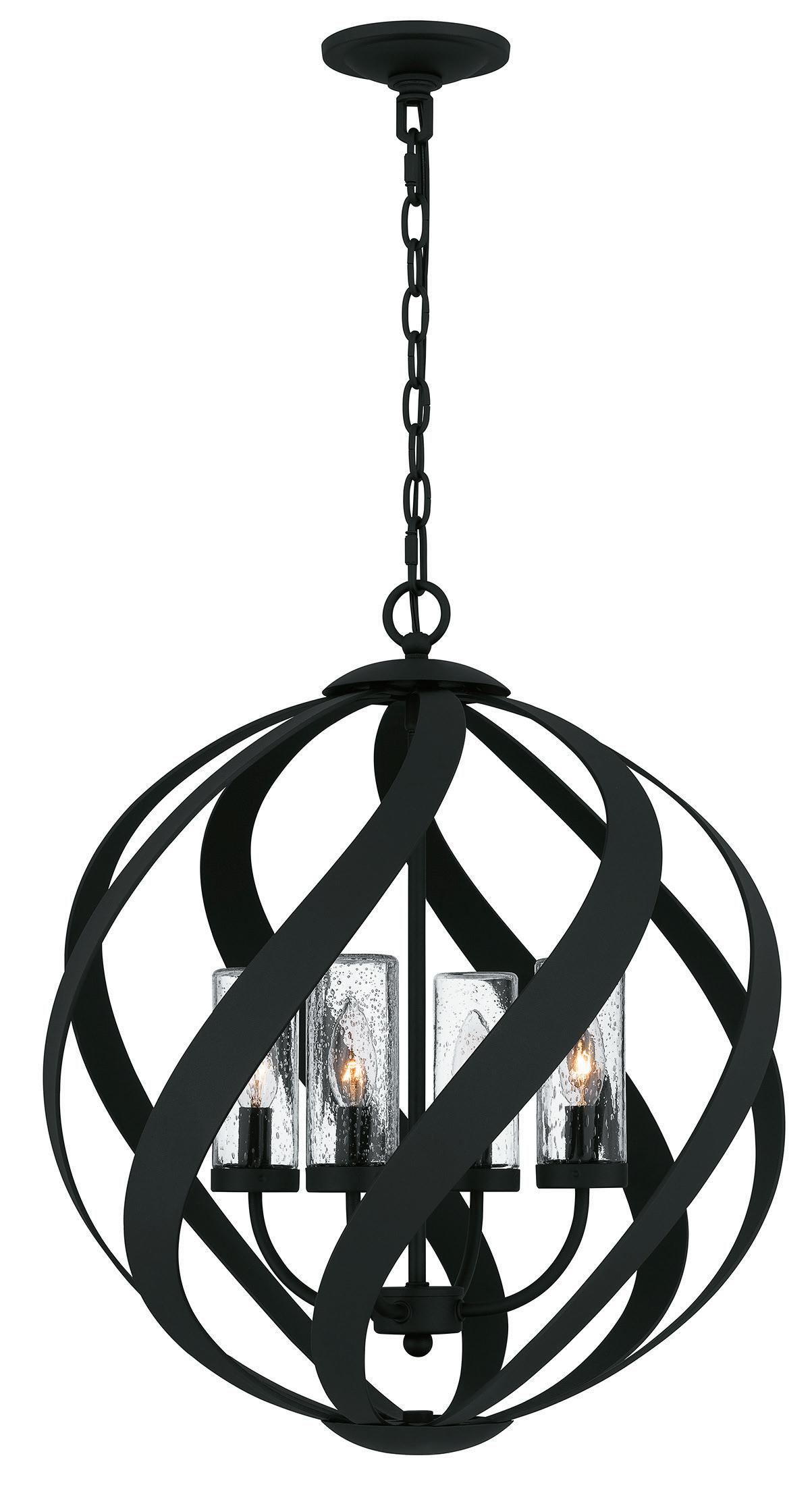 Though you can choose from a clear hammered glass shade, beige fabric shade, classic chandelier, or an airy, open-frame pendant, Blanche features a unifying style via its simple lines and traditional matte black finish. The different shapes — from flush mount to chandelier — also work well together throughout a variety of spaces.