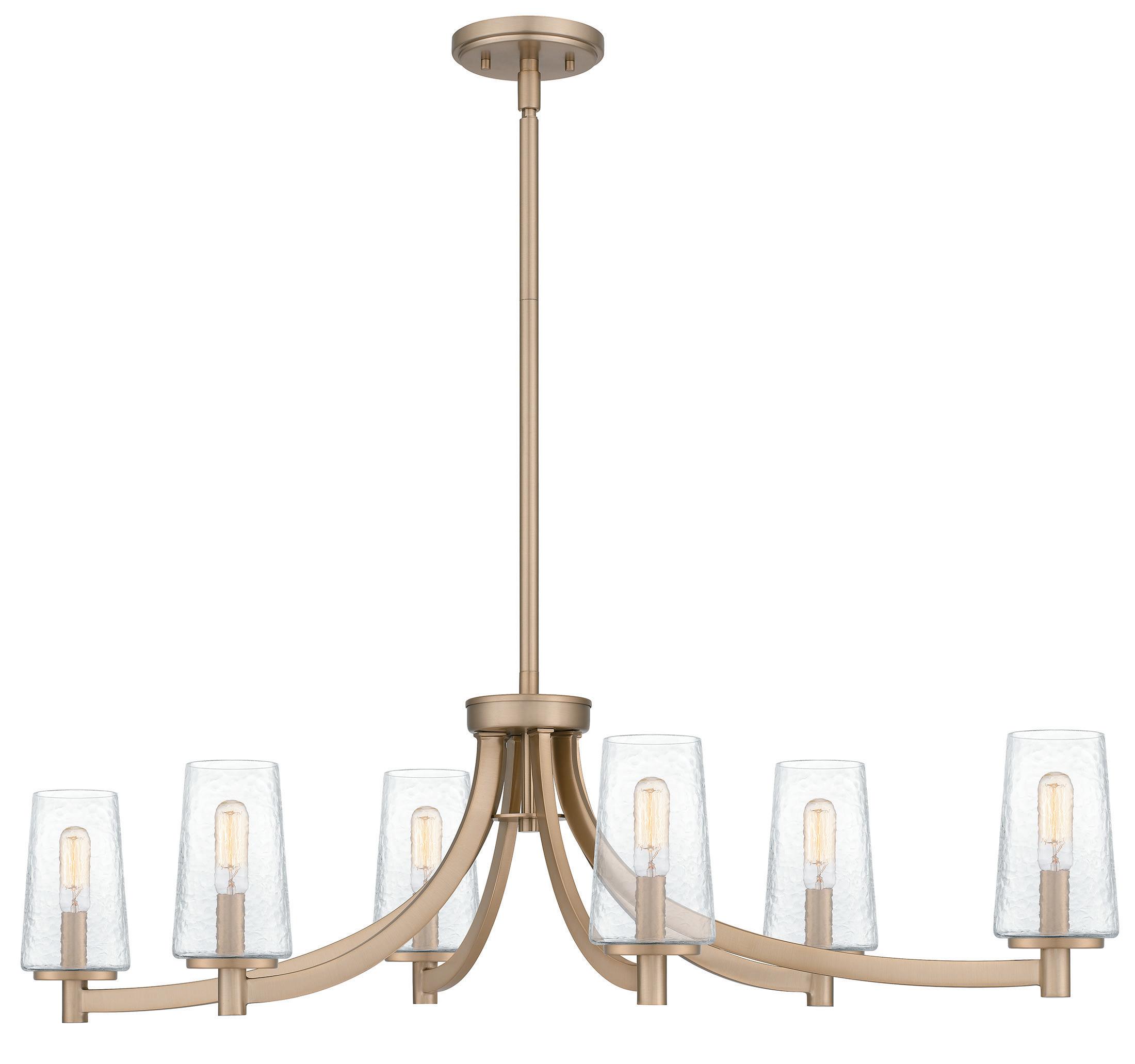 A white metal frame and light gold accents set the tone for Dusty Lane. The effect is fresh and fashionable, with a subtle nod to nature. With its open framework and gold leaf motifs, this linear chandelier is the perfect complement to coastal or modern farmhouse design. Hang Dusty Lane over a kitchen island or table for a beautiful statement.