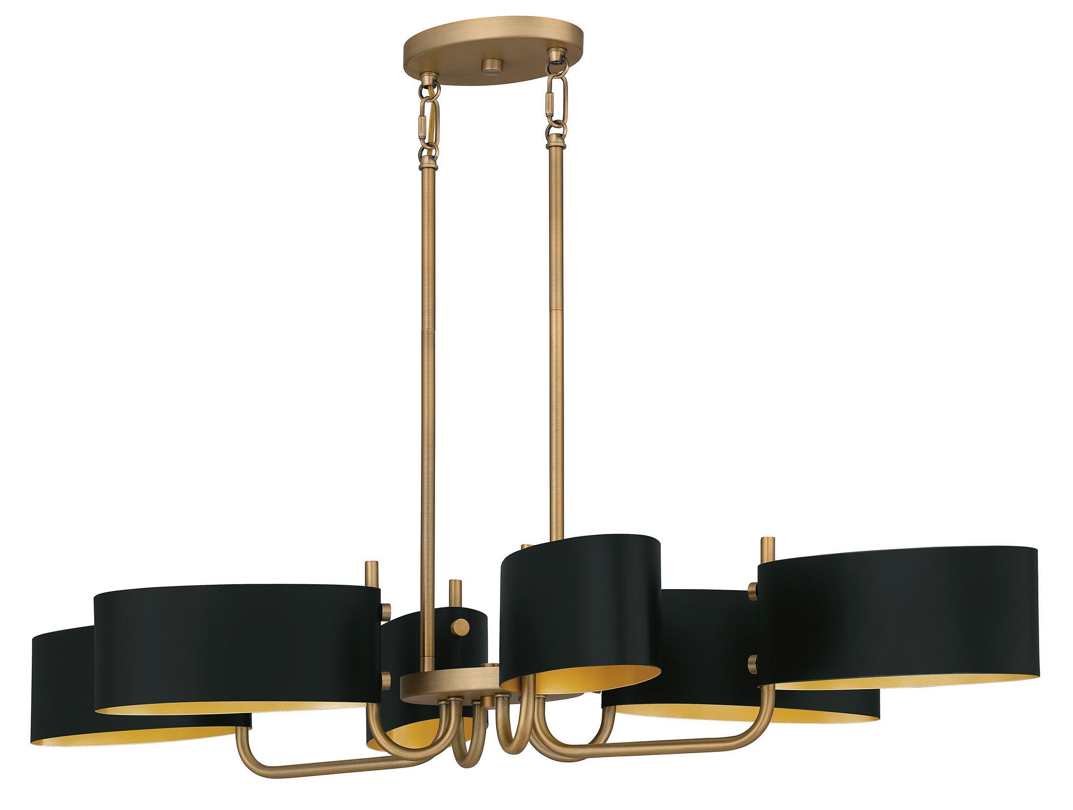 The Althea chandelier is a sparkling piece of jewelry that adds beautiful illumination and elegance to any space. A classic matte black finish pairs with painted gold accents for a rich, dual-tone effect. Clear crystal accents hang delicately in layers to add an extra hint of luxury and style in a living room, home office, bedroom, or over a dining room table.