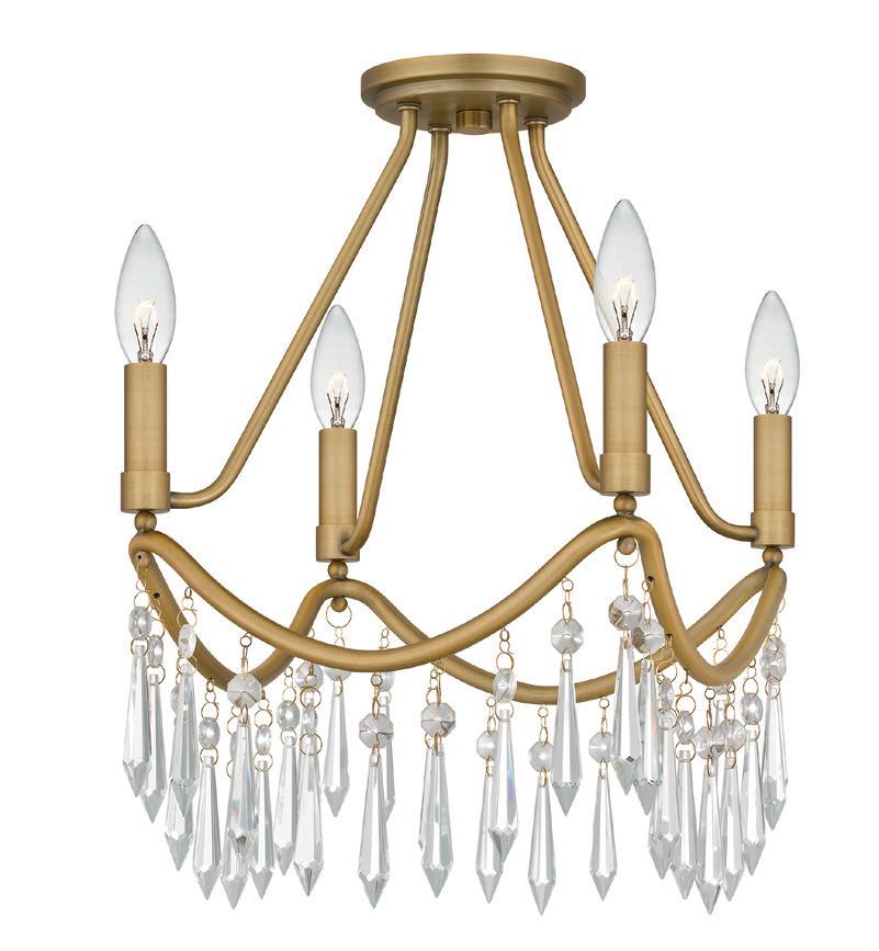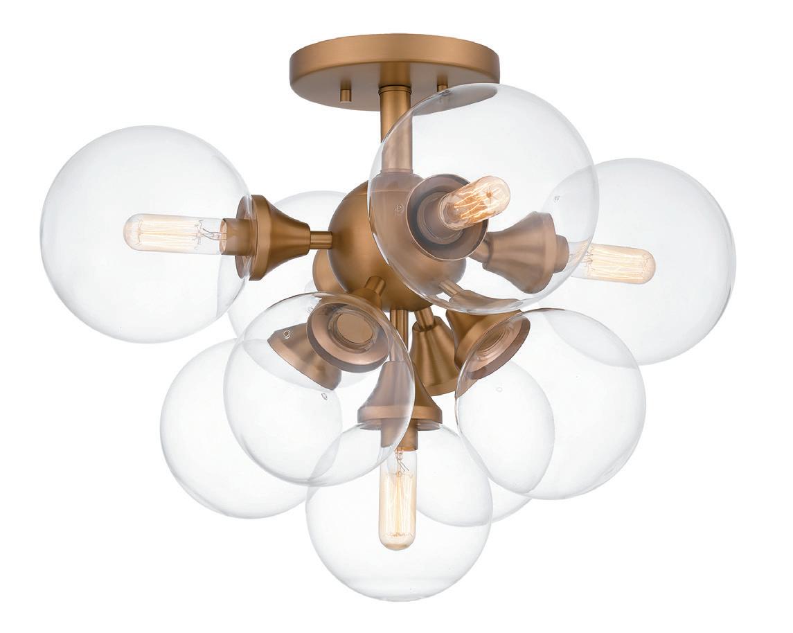 Aged brass and clear crystal glass beads make an elegant pairing in the Sunday collection. Available as a semi-flush mount or mini chandelier, Sunday adds a hint of glamour to any foyer, home office, dining room, or living room. Hang this versatile fixture in a variety of settings for instant luxury.
