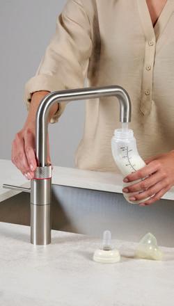 Ein Quooker ist die sicherste Art und Weise, kochendes Wasser zuzubereiten. Quooker-Hähne sind mit einer Kindersicherung ausgestattet, und die Hähne selbst verfügen über eine doppelwandige Isolierung. Der innovative mit Luft versetzte Sprühstrahl sorgt dafür, dass kochendes Wasser tröpchenförmig ausströmt, um Verbrühungen zu vermeiden - zeitgleich leuchtet eine LED rot auf.