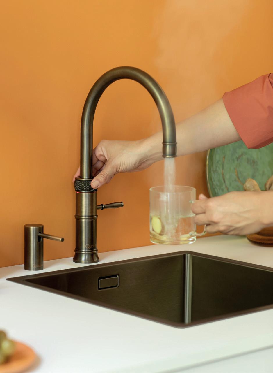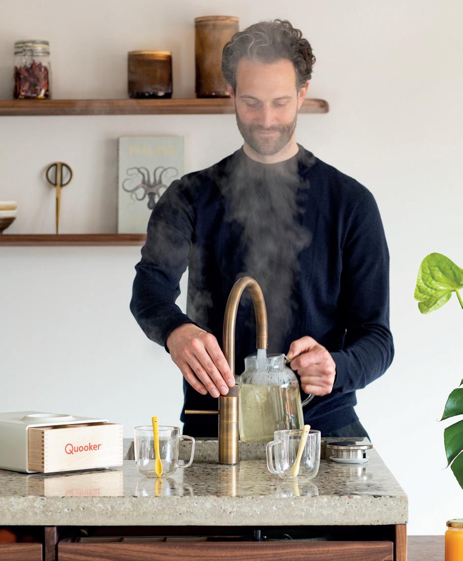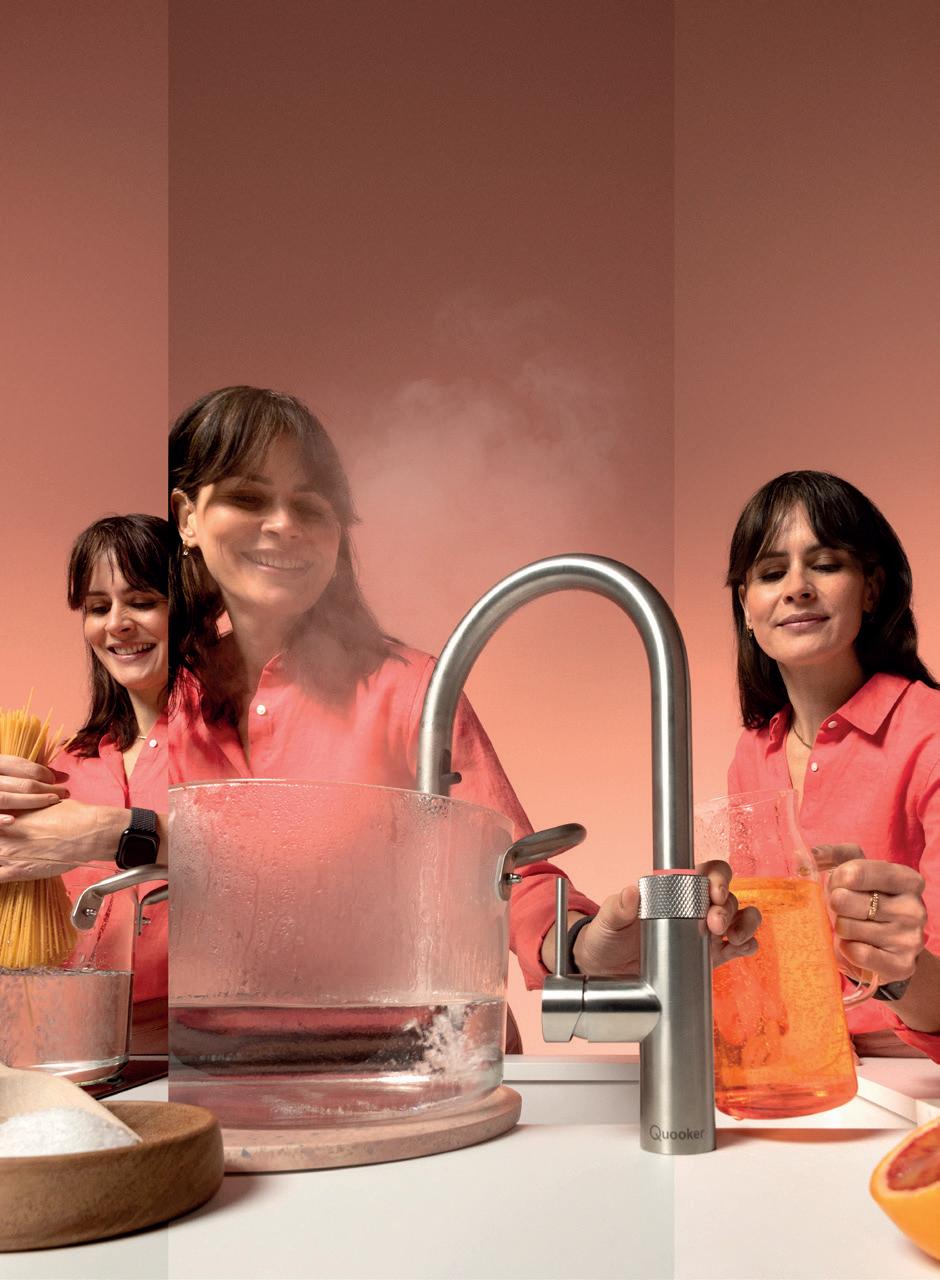 Immer sofort 100°C kochendes Wasser sowie gefiltertes und gekühltes sprudelndes und stilles Wasser zur Hand. Von Sonnenaufgang bis spät am Abend. Ein Quooker-Hahn ist ausgesprochen praktisch, zu jeder Tageszeit. Vom gekochten Ei frühmorgens bis zur Tasse Tee vor dem Schlafengehen.