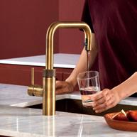 Alle Quooker Hähne sind in mehreren Oberflächenvarianten erhältlich. Der ideale Hahn für Ihre Küche ist der, den Sie selbst zusammenstellen. Mit oder ohne biegsamen Zugauslauf. Eckig oder rund. Klassisch oder modern. Darüber hinaus lautet die entscheidende Frage: Möchten Sie nur 100 °C kochendes sowie kaltes und warmes Wasser oder soll es auch gefiltertes stilles Wasser oder gefiltertes gekühltes stilles und sprudelndes Wasser sein?