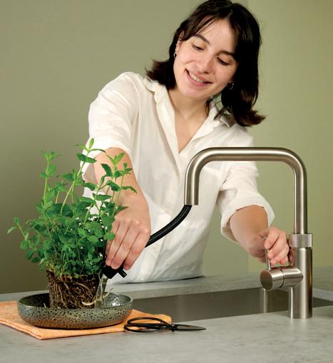 Der Flex ist der einzige Quooker-Hahn mit einem biegsamen Zugauslauf. Das ist unglaublich praktisch, zum Beispiel beim Gemüsewaschen oder beim Reinigen der Spüle. Durch den Kochendwasser-Stopp gibt der Flex kein kochendes Wasser ab, wenn der Schlauch ausgezogen ist.