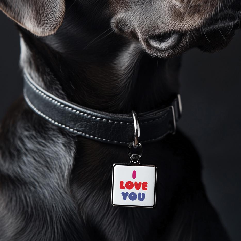 1 1/8” square with jump ring. lightweight hard enamel with black nickel plating.