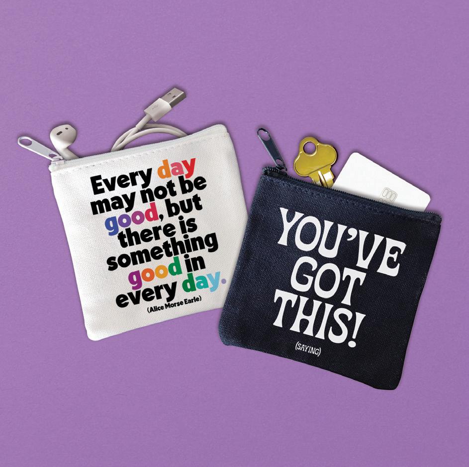 4¼” square with zipper closure. 12 oz. cotton canvas.