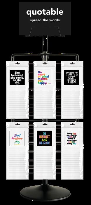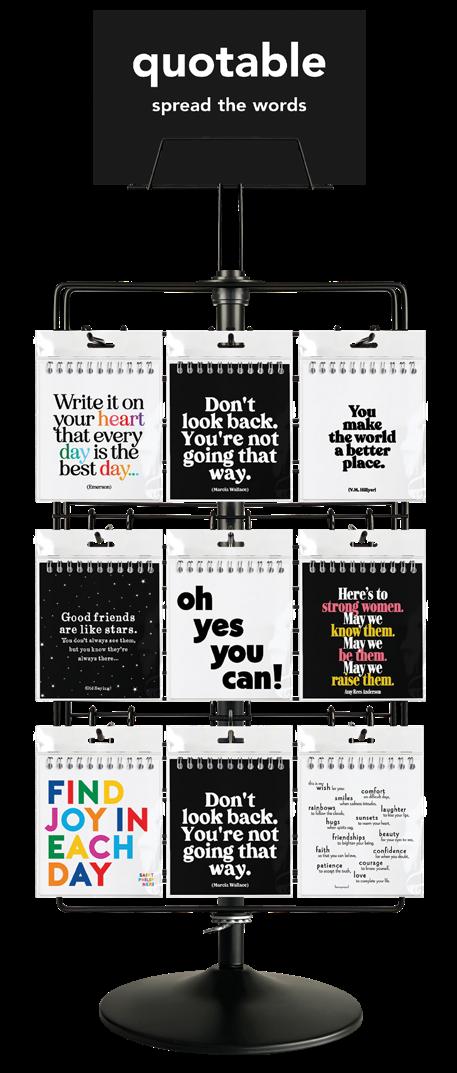 We love the quotes and they are quality products. They are a very big seller for graduation or any other occasion. Love them! Of all the vendors that I deal with, Quotable is the easiest to order from and the quickest to turn around the order. place your order online by visiting quotablecards.markettime.com email your order to orders@quotablecards.com we're here to help! t 212-420-7552 f 212-420-7558 quotablecards.com Ordering iseasy!