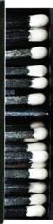 23/8 x 23/8 x 3/4”. each box contains 80 black or natural wood matchsticks with coordinating color tips. H new design. $3.00 each, order in 10’s.