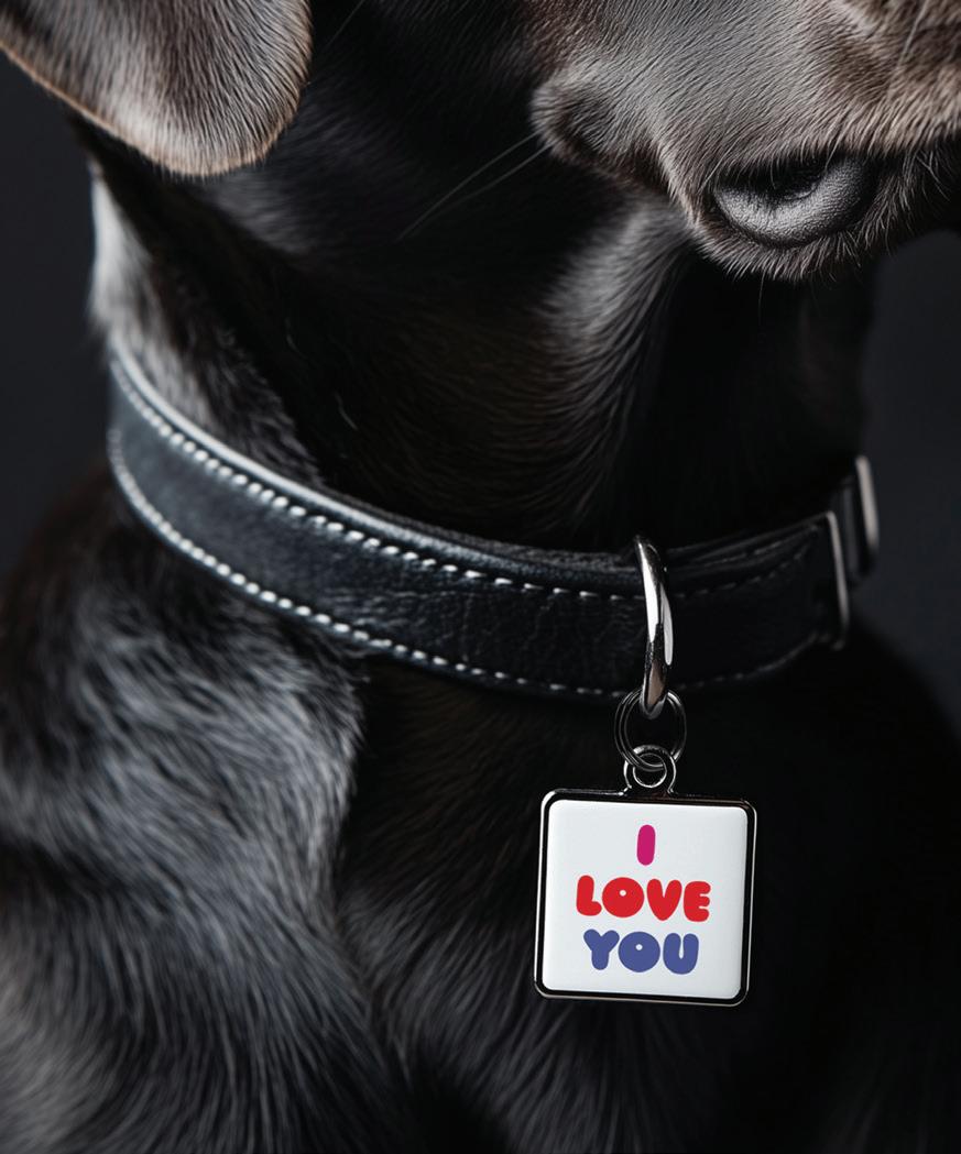 1 8” square with jump ring. lightweight hard enamel with black nickel plating. individually packaged.