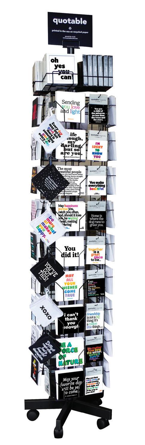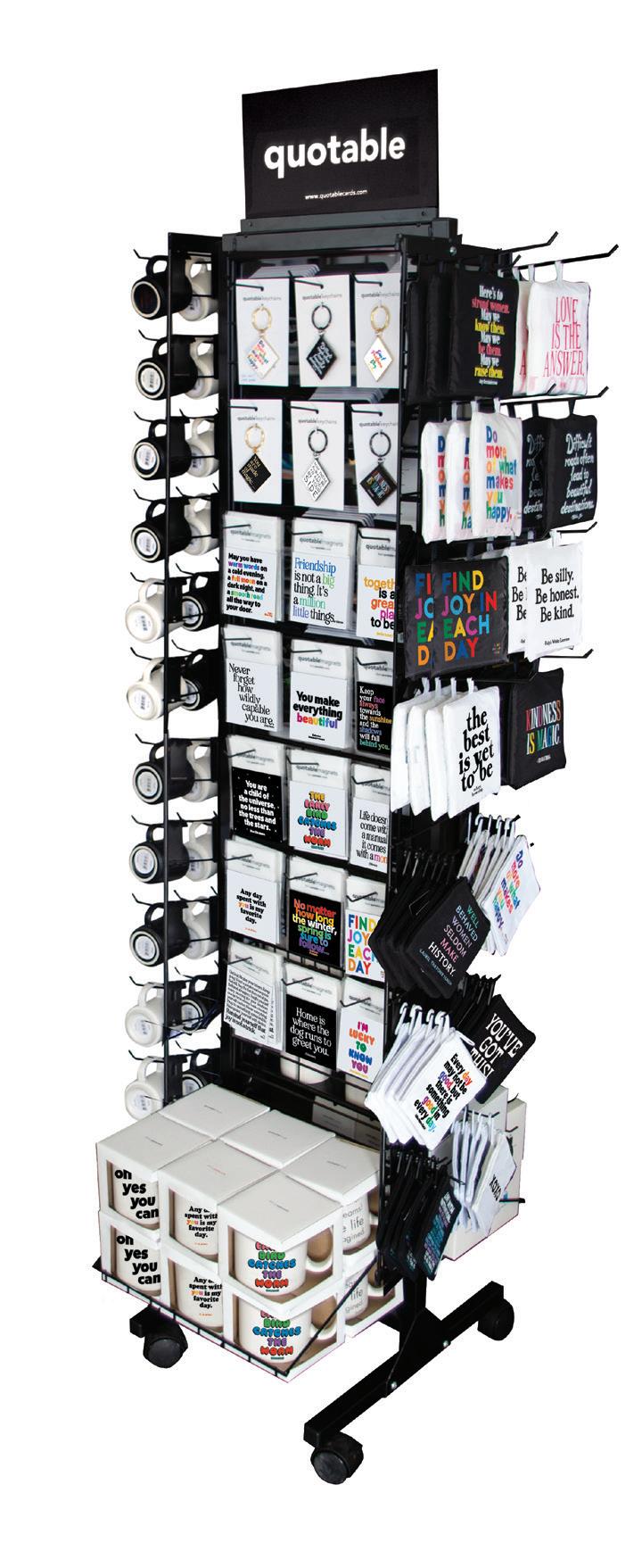 our compact 4-sided tabletop spinner is a great way to showcase quotable gifts in your store.