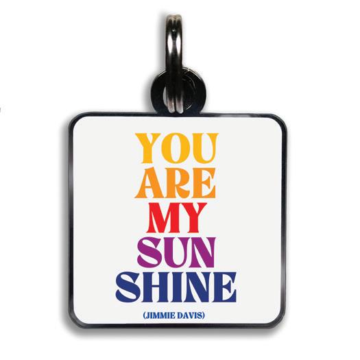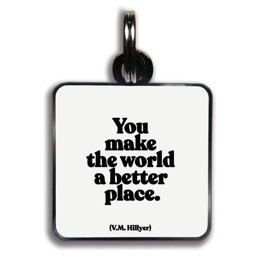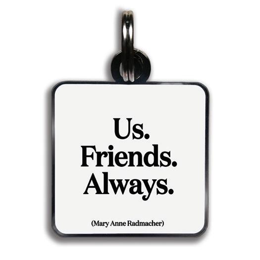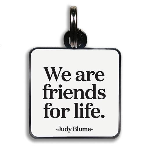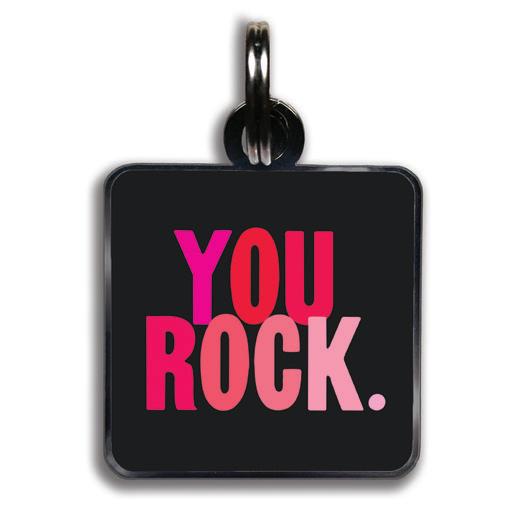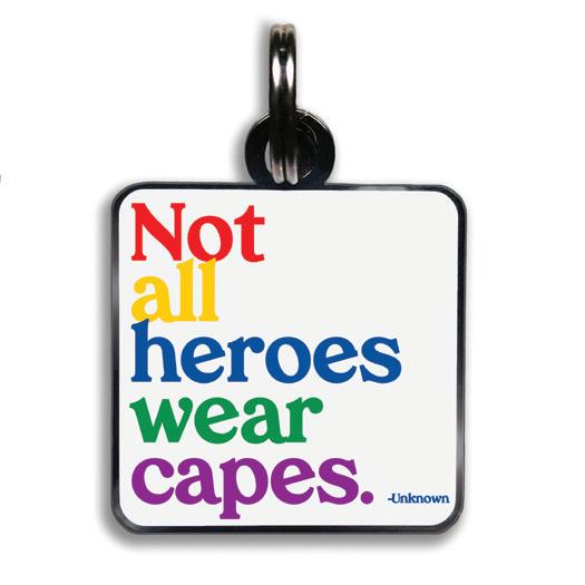 11/8” square with jump ring. lightweight hard enamel with black nickel plating. individually packaged.