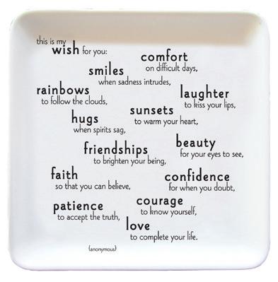 5” square. Matte finish ceramic. Microwave & dishwasher safe.