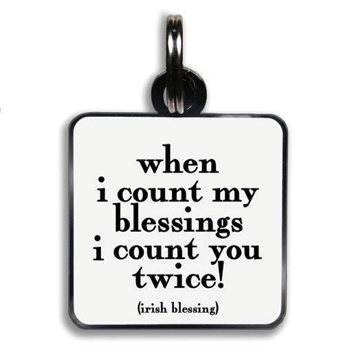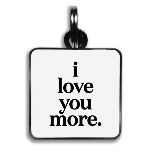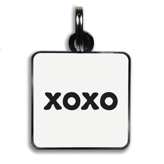11/8” square with jump ring. lightweight hard enamel with black nickel plating. individually packaged.