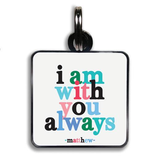 11 8 ” square with jump ring. Lightweight hard enamel with black nickel plating. Individually packaged.