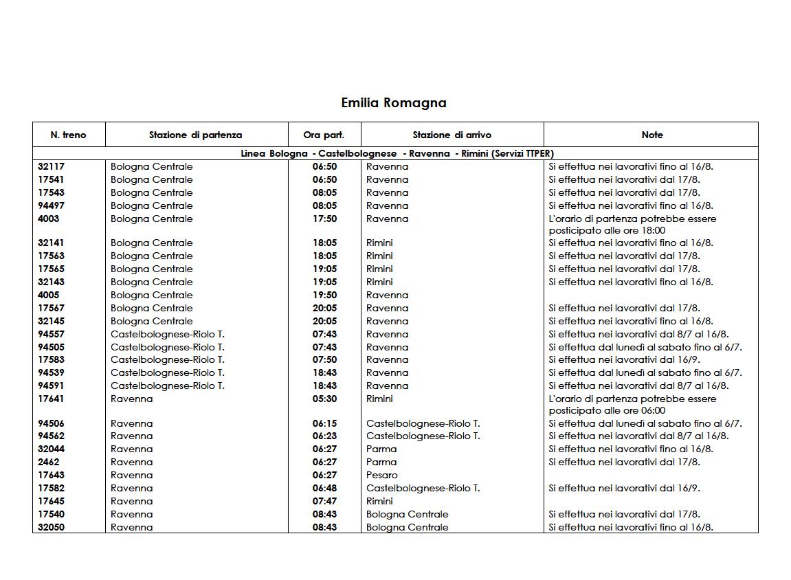 Treni garantiti in Emilia-Romagna